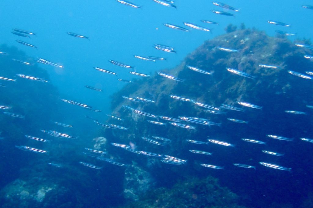 移動中はキビナゴの群れに囲まれました。